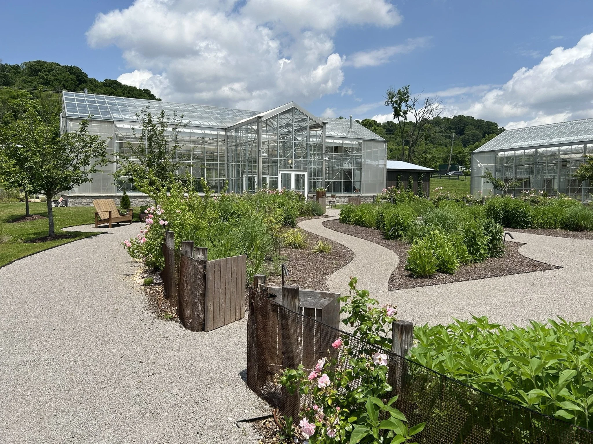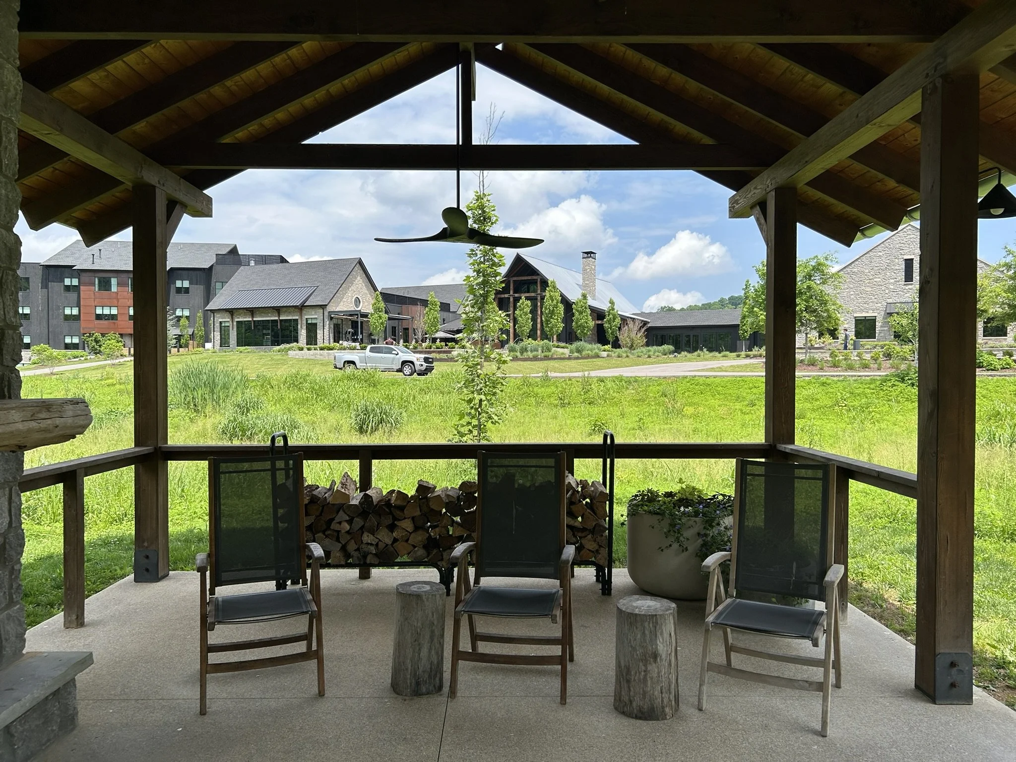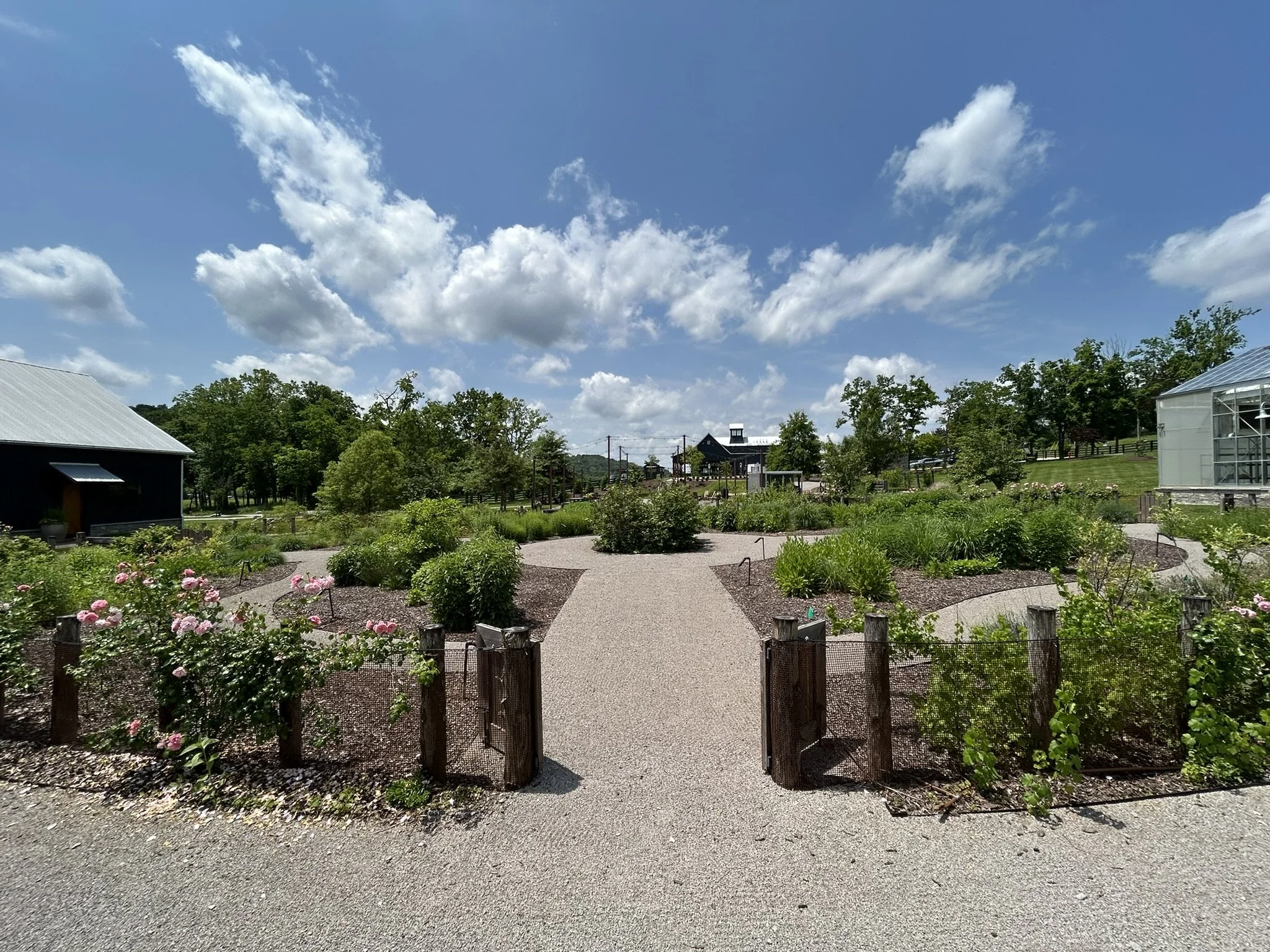 Located in Franklin, TN, Southall is a 300-acre retreat center characterized by rustic southern comfort. As an initial phase in the greater master plan, The Rambling hosts gatherings complemented by meals crafted by the chefs of Southall. Attendees enjoy these meals at long wooden farmhouse-style tables that create a sense of community with fellow guests. Repurposed sails drape over metal wire strung between steel posts to create airy shade during the day, and globe lights create an ethereal atmosphere at night. Firepits and contemporary Adirondack chairs offer relaxed gathering space. Planters surround the steel posts and custom wooden square planters bring trees into the space helping to define lush rooms within the greater space. Sited adjacent to the greenhouses and quadrant gardens, guests can stroll through the vegetables and herbs or rest on a bench below the cherry trees. State-of-the-art greenhouses grow local food year-round, and the quadrant garden is home to perennial fruits and vegetables used by the chefs at Southall.